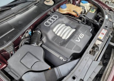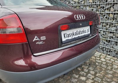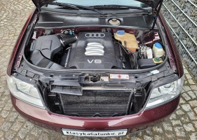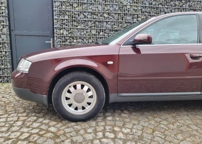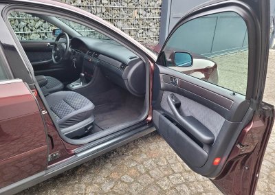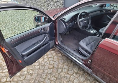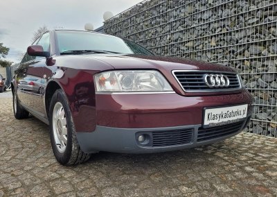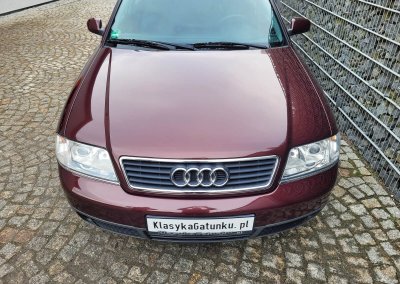 Przedmiotem sprzedaży jest Audi A6 serii C5 w kolorze wiśniowym z szaro-czarną tapicerką. Sprowadzony z Osterholz-Scharmbeck, Niemcy od trzeciego właściciela. Prezentowany egzemplarz jest jednym z pierwszych wyprodukowanych sztuk c5 w historii marki. Samochód ma prawie 30 lat, mimo to jest zachowany w dobrym stanie. Zachowała się kompletna teczka z dokumentami od auta wraz z książeczką serwisową z regularnymi wpisami oraz trzy oryginalne kluczyki.