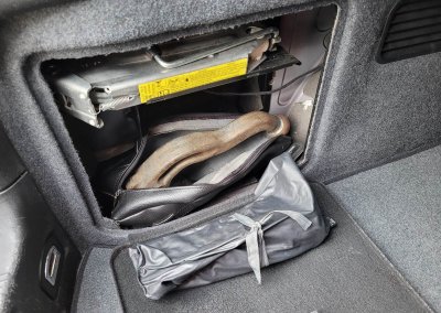 Wnętrze zachowane w bardzo dobrym stanie, widoczne jedynie minimalne ślady użytkowania. Tapicerka bardzo ładna, bez przetarć czy uszkodzeń. Żadne elementy nie były obszywane czy poddawane regeneracji. Oryginalne radio z instrukcją i kartą kodową. Oryginalne dywaniki welurowe. Wszystkie zegary sprawne. Podsufitka odkleja się, możemy wykonać na nowo na życzenie Kupującego. Plastiki matowe bez rys czy pęknięć.