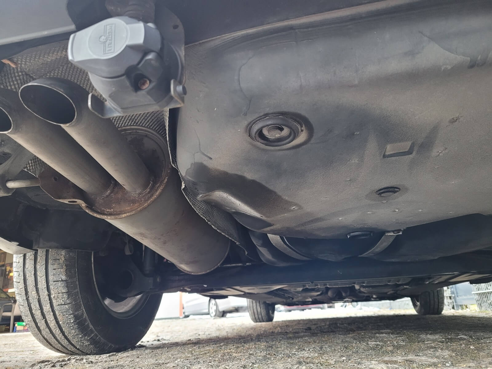 Nadwozie zachowane w dobrym stanie ze śladami użytkowania. Niewielkie ryski, odpryski, wgniotki na karoserii jednak stan ponadprzeciętny patrząc na wiek auta. Brak widocznej korozji. Reflektory przednie i tylne bez uszkodzeń. Wszystkie szyby oryginalne łącznie z czołową. Na wyposażeniu wypinany hak holowniczy o udźwigu 1700/750kg.
