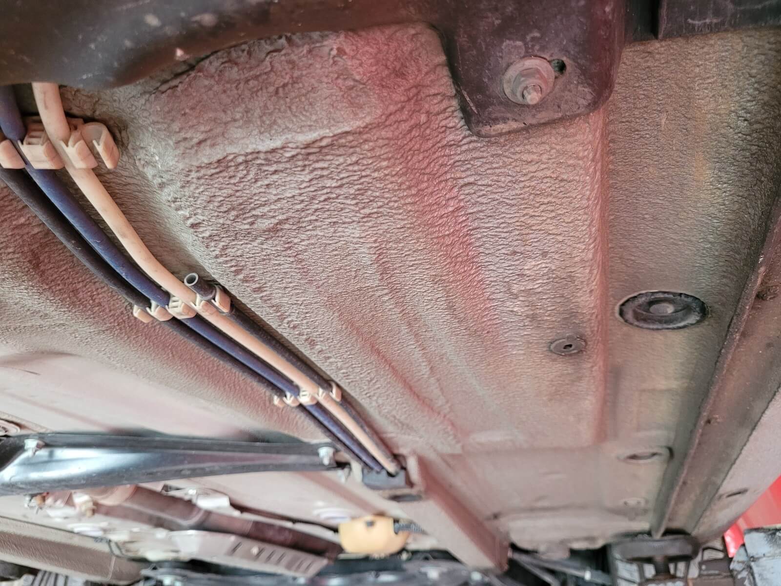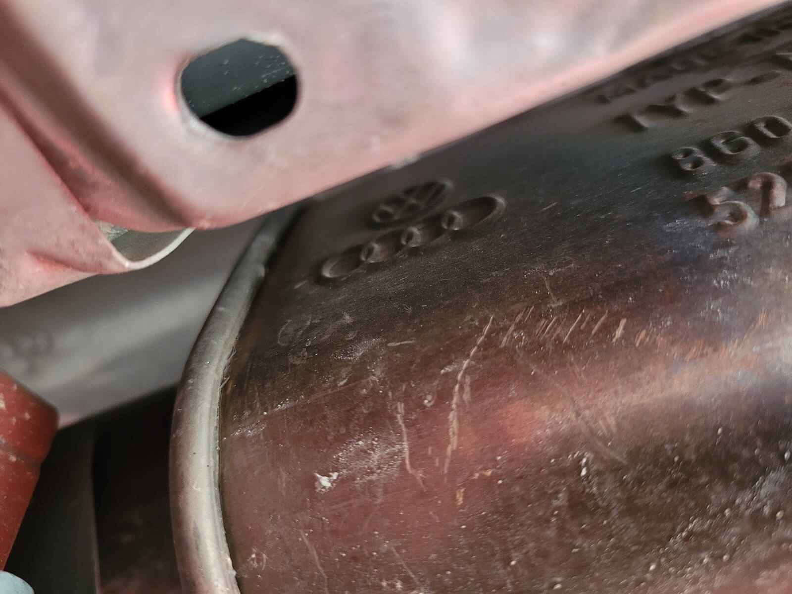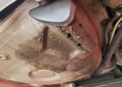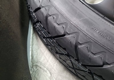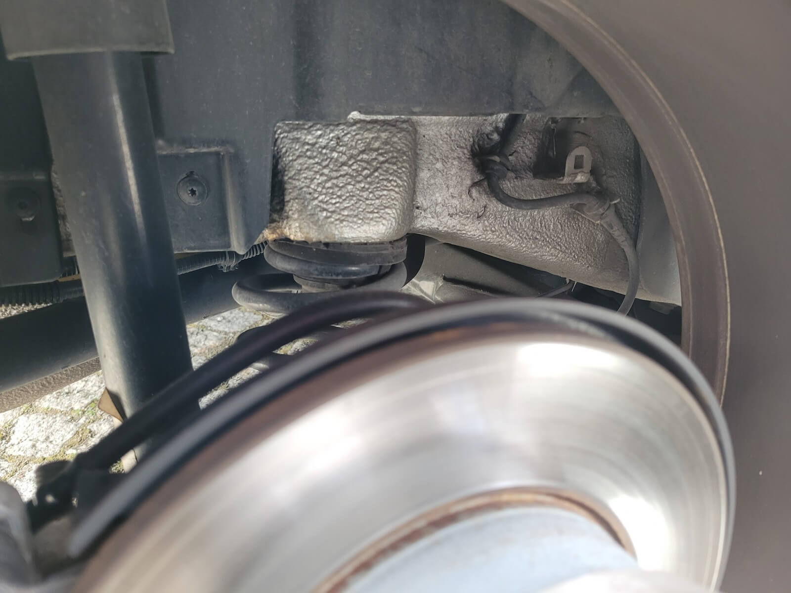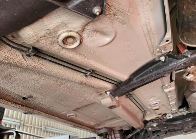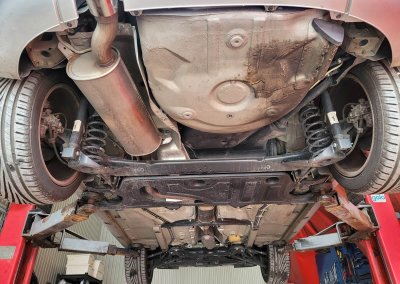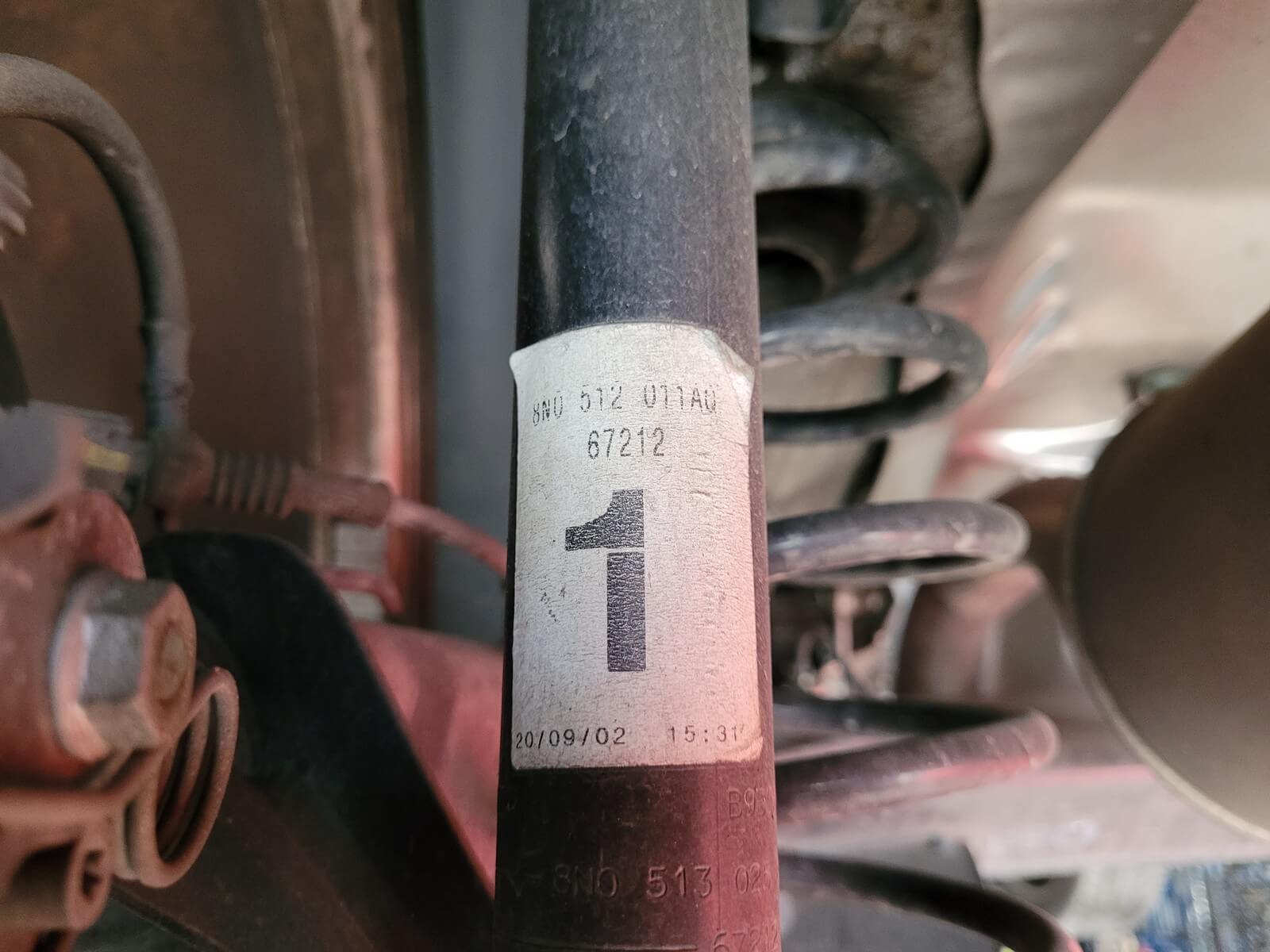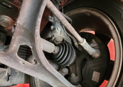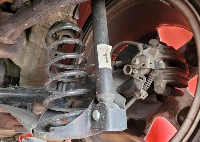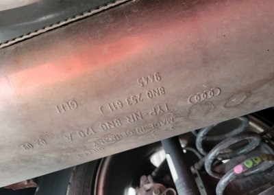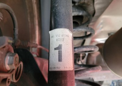 • Podwozie zachowane w wyjątkowo dobrym stanie. Widoczny jest jeszcze fabryczny wosk oraz naklejki na elementach zawieszenia.