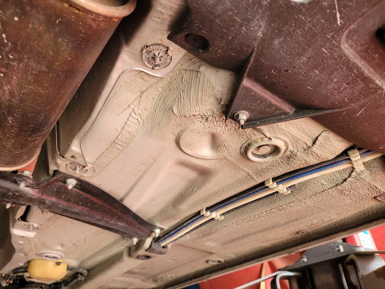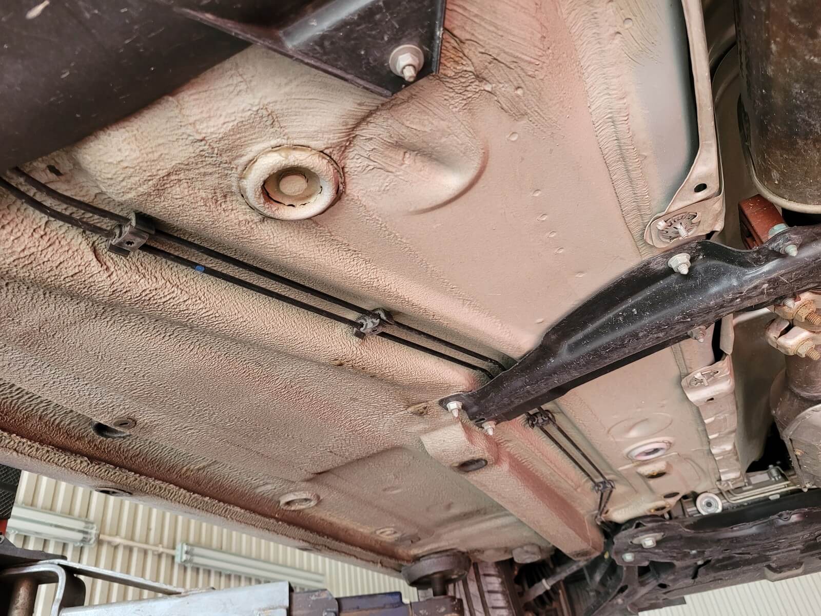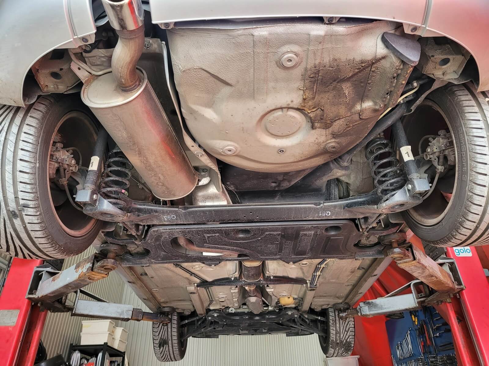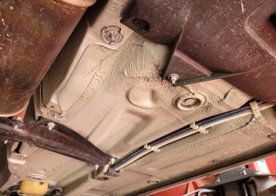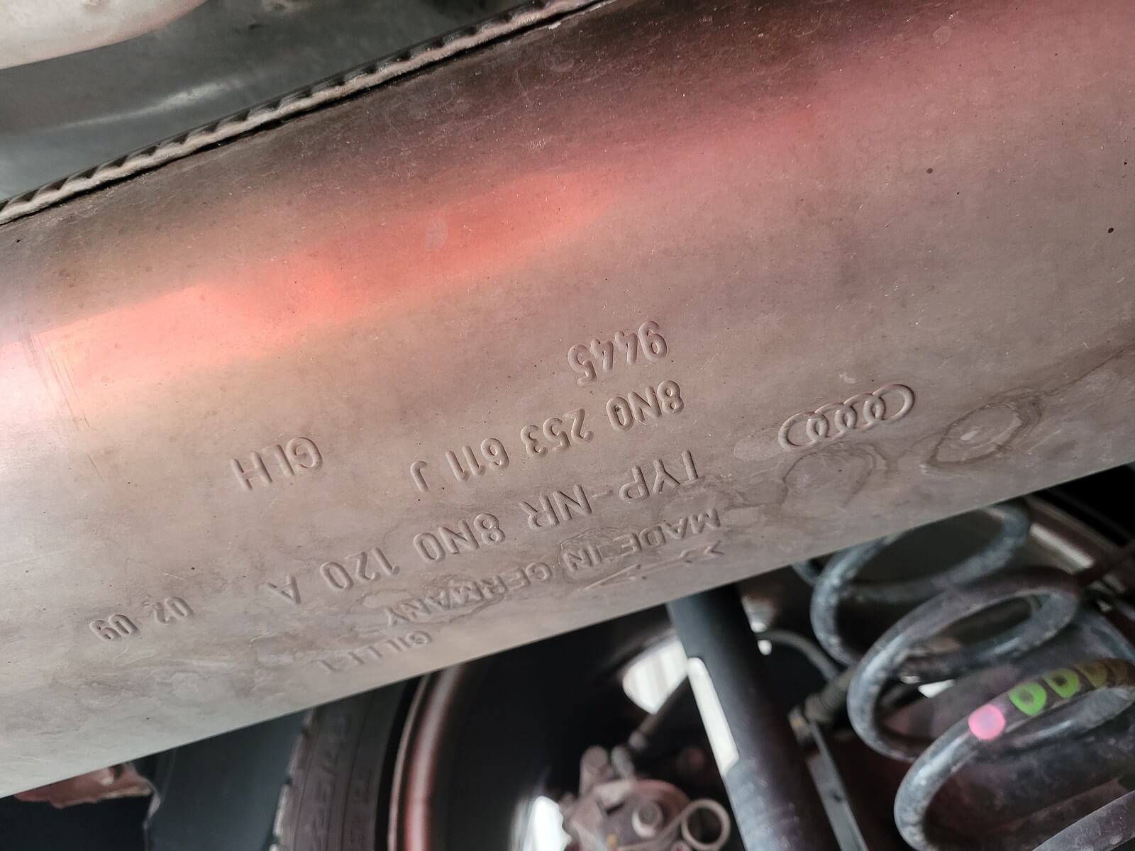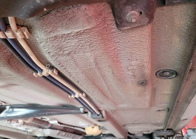 • Podwozie zachowane w wyjątkowo dobrym stanie. Widoczny jest jeszcze fabryczny wosk oraz naklejki na elementach zawieszenia.