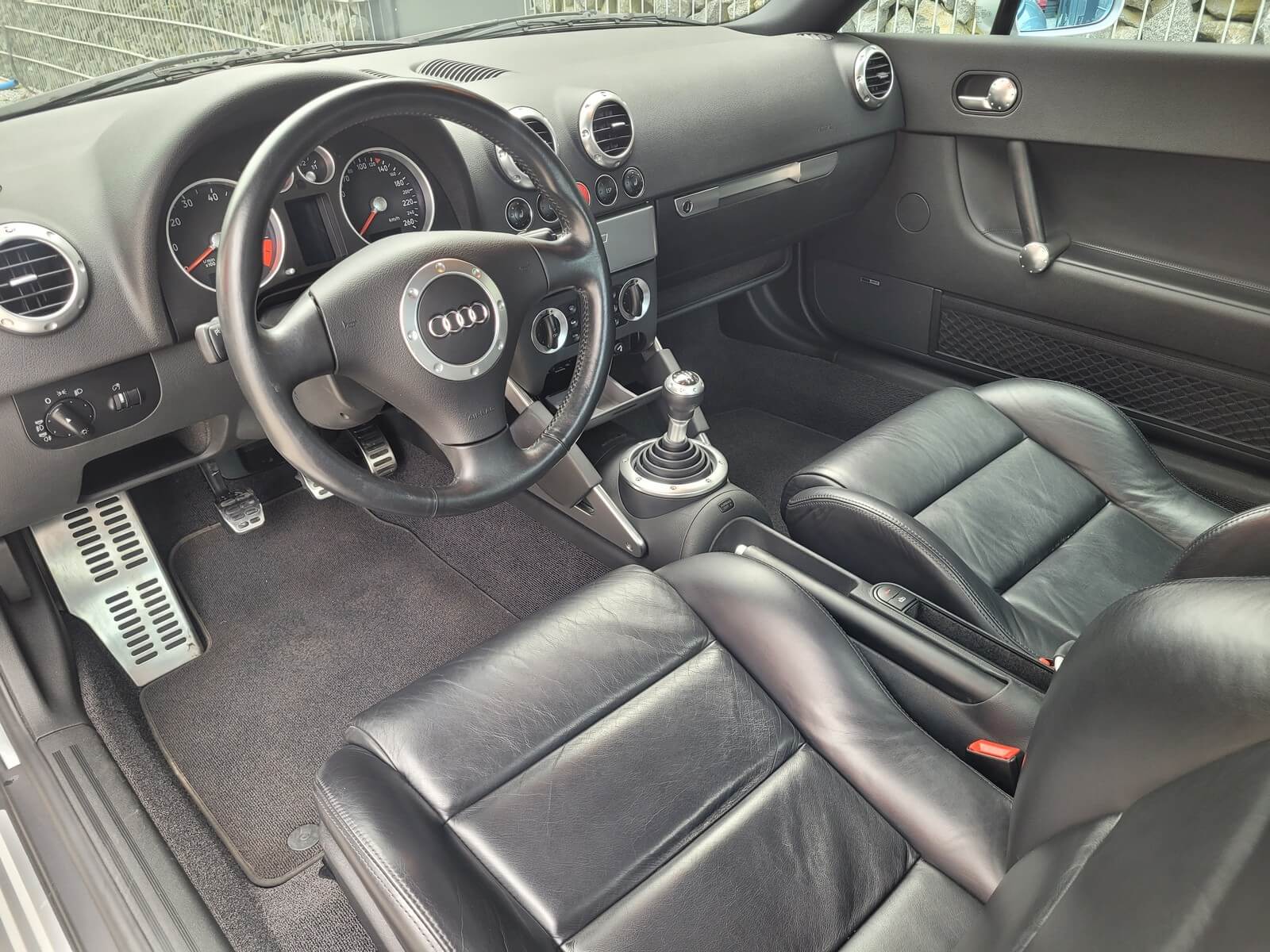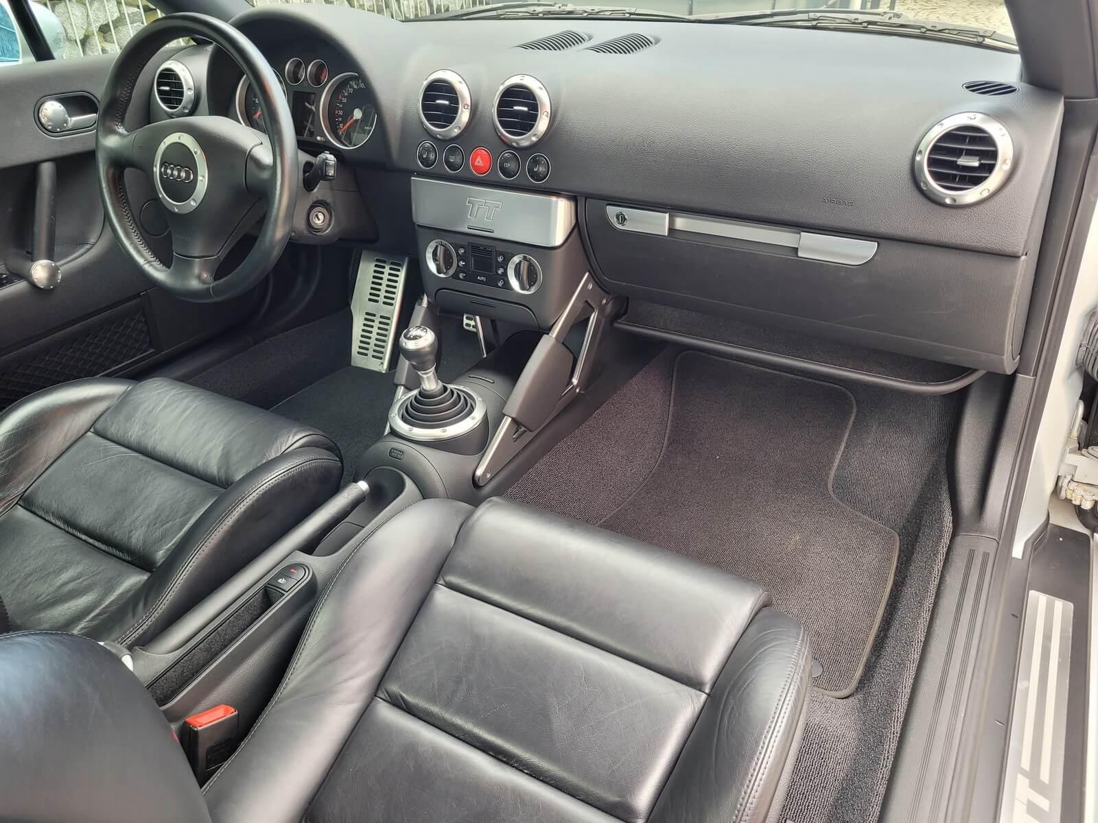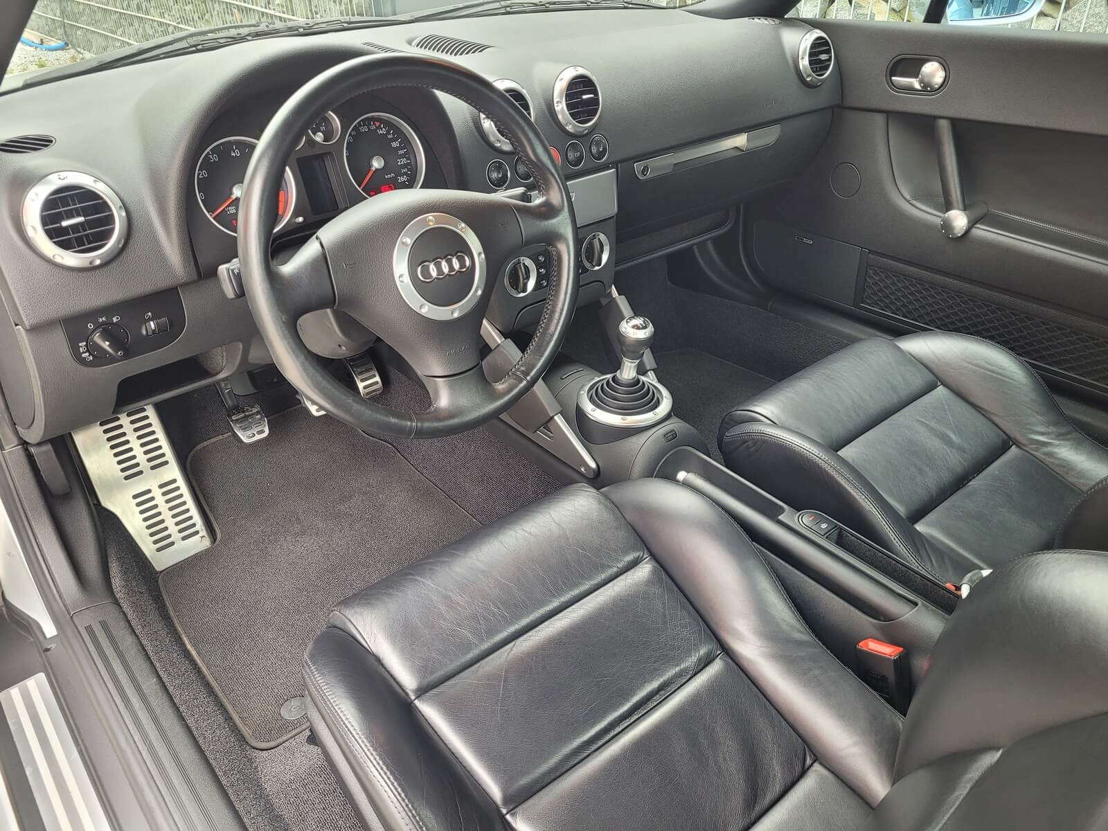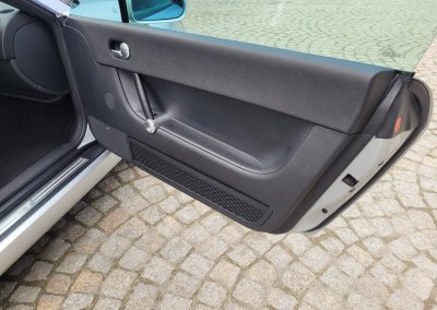 Przedmiotem sprzedaży jest praktycznie nowe Audi TT serii 8N w kolorze srebrnym, z czarną skórzaną tapicerką.