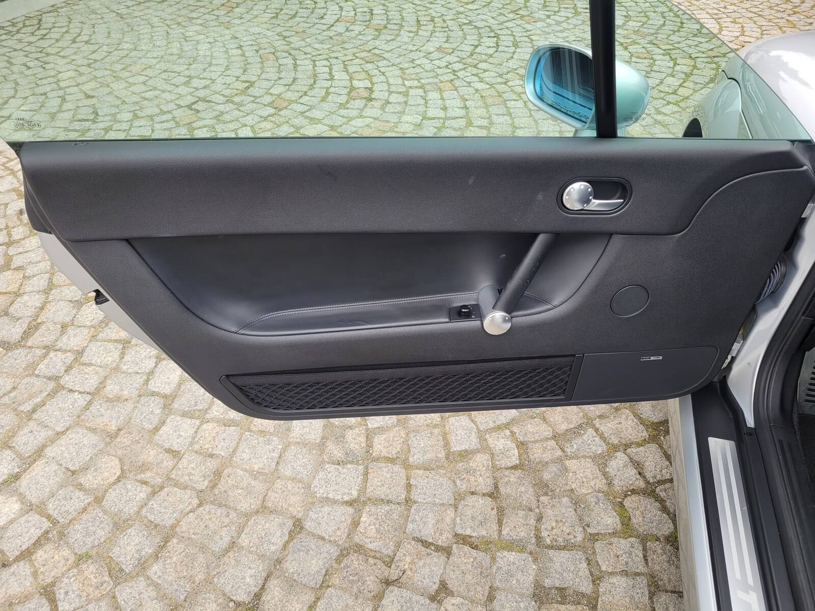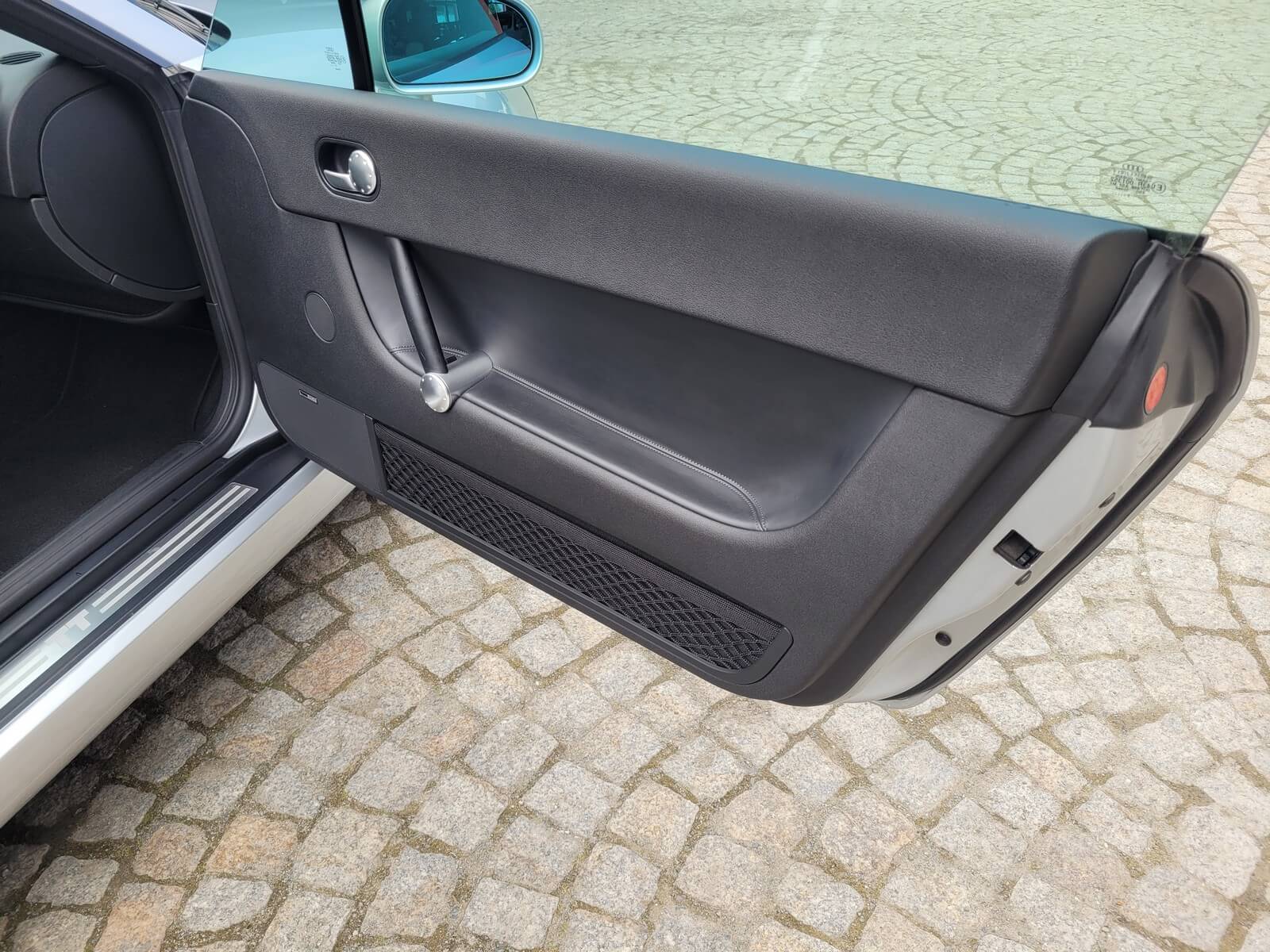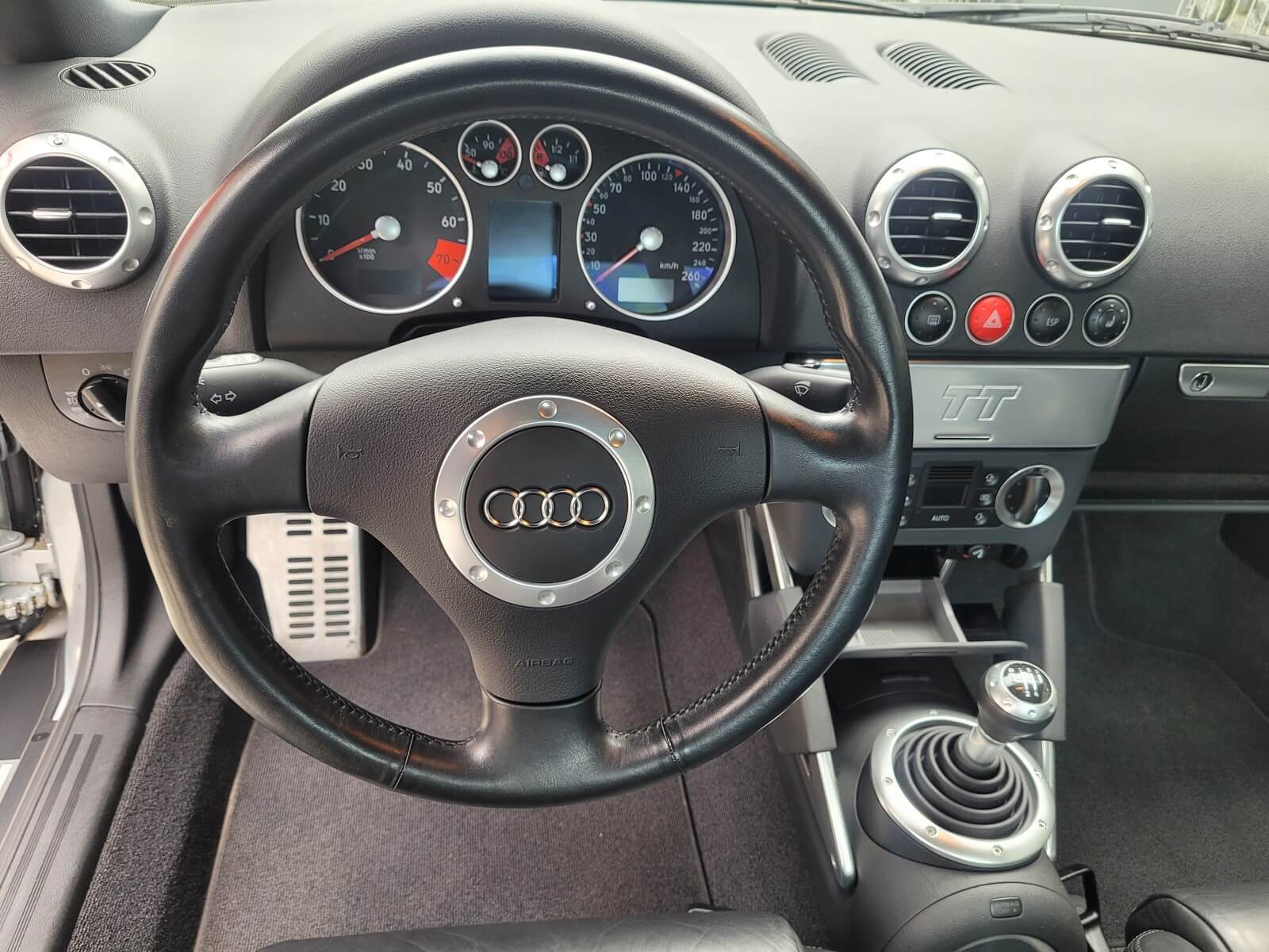 Przedmiotem sprzedaży jest praktycznie nowe Audi TT serii 8N w kolorze srebrnym, z czarną skórzaną tapicerką.