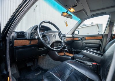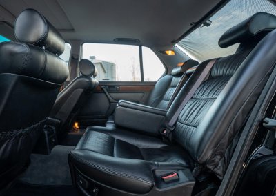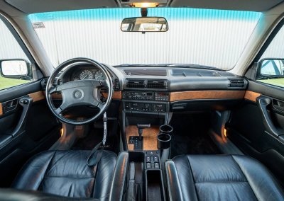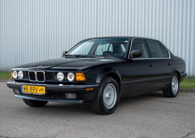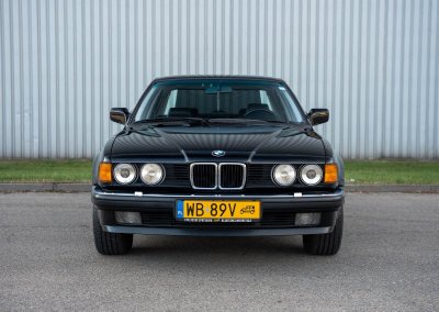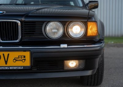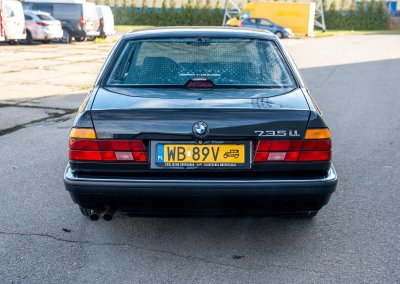 Oferuję samochód zabytkowy BMW 735i Long serii E32 z roku 1988. To egzemplarz drugiej generacji serii 7, wyposażony w rzędowy, sześciocylindrowy silnik M30 o pojemności 3.43L i mocy 211 KM, z automatyczną skrzynią biegów i dyferencjałem o ograniczonym poślizgu (LSD 25%). Skonfigurowany w charakterystycznym dla marki połączeniu czarnego lakieru Schwarz (086) i czarnego wnętrza z drewnianymi dekorami.