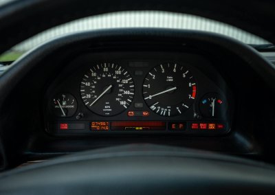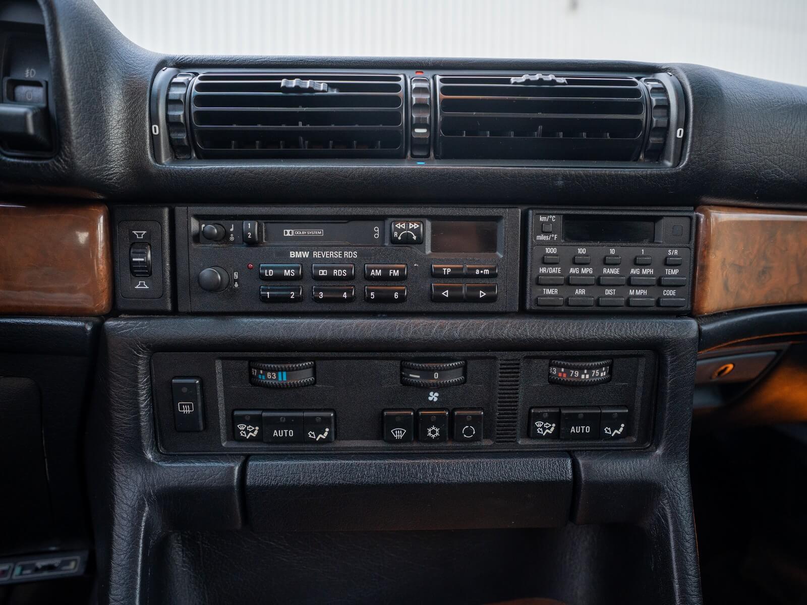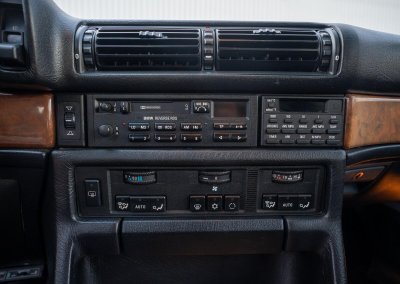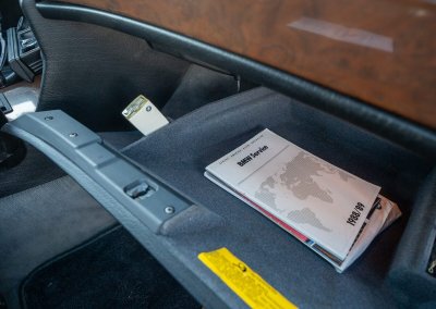 Przeszło 37‑letni egzemplarz ma niewielki, udokumentowany przebieg 75 tys. mil (120 tys. km) i zachowany jest w całości w oryginalnym stanie, łącznie z fabryczną grubością lakieru, z minimalnymi śladami użytkowania. Nie posiada żadnych modyfikacji, nigdy nie posiadał instalacji LPG, haka ani innych przeróbek. Jest kompletny, wyposażenie jest zgodne z VIN, wszystkie elementy blacharskie zachowały matching numbers. Komora silnika zachowana w fantastycznie oryginalnym stanie, nie myta, z zachowaną fabryczną woskową konserwacją, charakterystyczną dla egzemplarzy BMW wysyłanych poza Europę w latach 80/90. Wnętrze jest utrzymane w stanie bardzo dobrym, nie było odnawiane, a tapicerka skórzana nie była lakierowana. Oprócz elektrycznie regulowanych i podgrzewanych foteli jest również elektrycznie regulowana kanapa. Podsufitka nie wisi, panele drzwiowe są równe i trzymają linię, deska rozdzielcza bez skaz i pęknięć wraz z dobrze zachowanymi drewnianymi dekorami świadczą o ponadprzeciętnym stanie zachowania i dobrych warunkach, w jakich to reprezentacyjne auto było używane. Auto nie śmierdzi, wnętrze nie było spleśniałe, zalane lub zniszczone podczas importu.