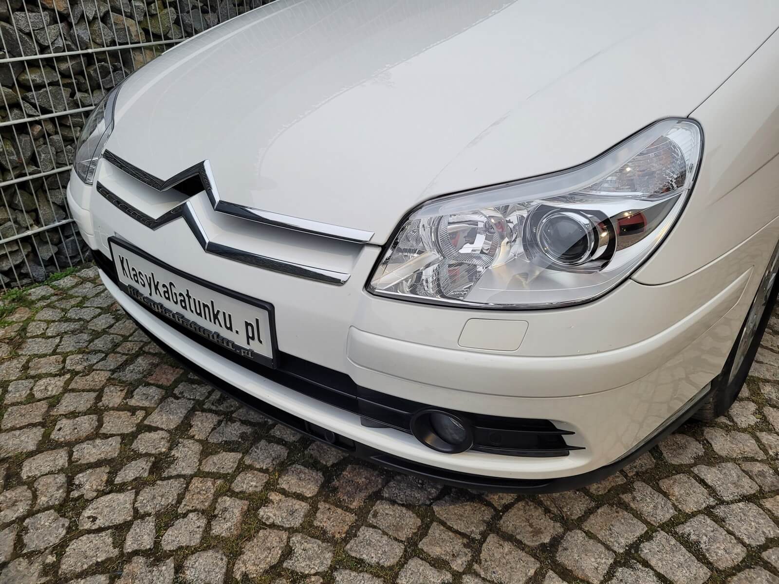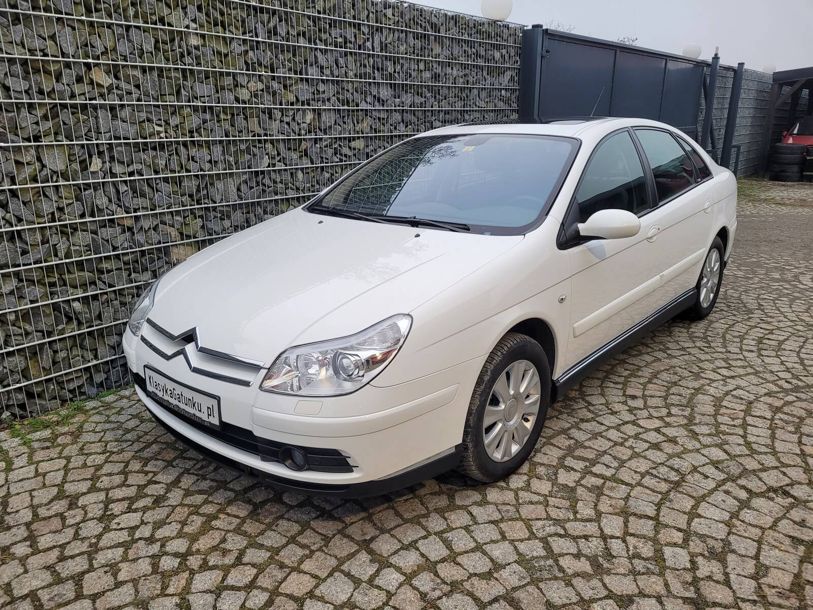 Przedmiotem sprzedaży jest Citroen C5 w kolorze białym z szarą skórzaną tapicerką. Wyprodukowany na rynek Szwajcarski i tam użytkowany, następnie odkupiony przez starszego Pana w Czechach. Egzemplarz bardzo bogato wyposażony, na pokładzie oprócz wspomnianej już skórzanej tapicerki posiada m.in. systemy wspomagające jazdę – ESP, ABS, pełną elektrykę foteli, lusterek i szyb, wycieraczki z czujnikiem deszczu, światła z czujnikiem zmierzchu, tempomat czy automatyczną klimatyzację 2-strefową.