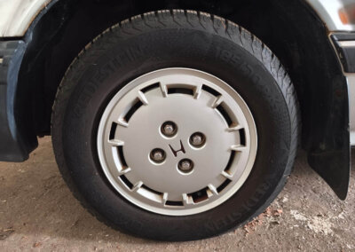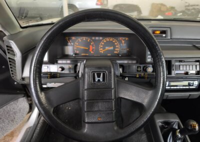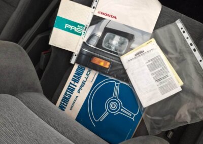 Honda Prelude rocznik 1987. Silnik 1.8 z manualną skrzynią biegów. Posiada welurową tapicerkę, alufelgi oraz szyberdach. Zachowana dokumentacja serwisowa, instrukcje, komplet briefów. Tylko 167 tysięcy kilometrów przebiegu. Samochód nie jest nowy, ma 38 lat. Posiada drobne mankamenty i ślady upływu czasu. W okolicach tylnych nadkoli pojawiają drobne ogniska rdzy. Jednak w rękach majsterkowicza czy pasjonata szybko odzyska dawny blask.