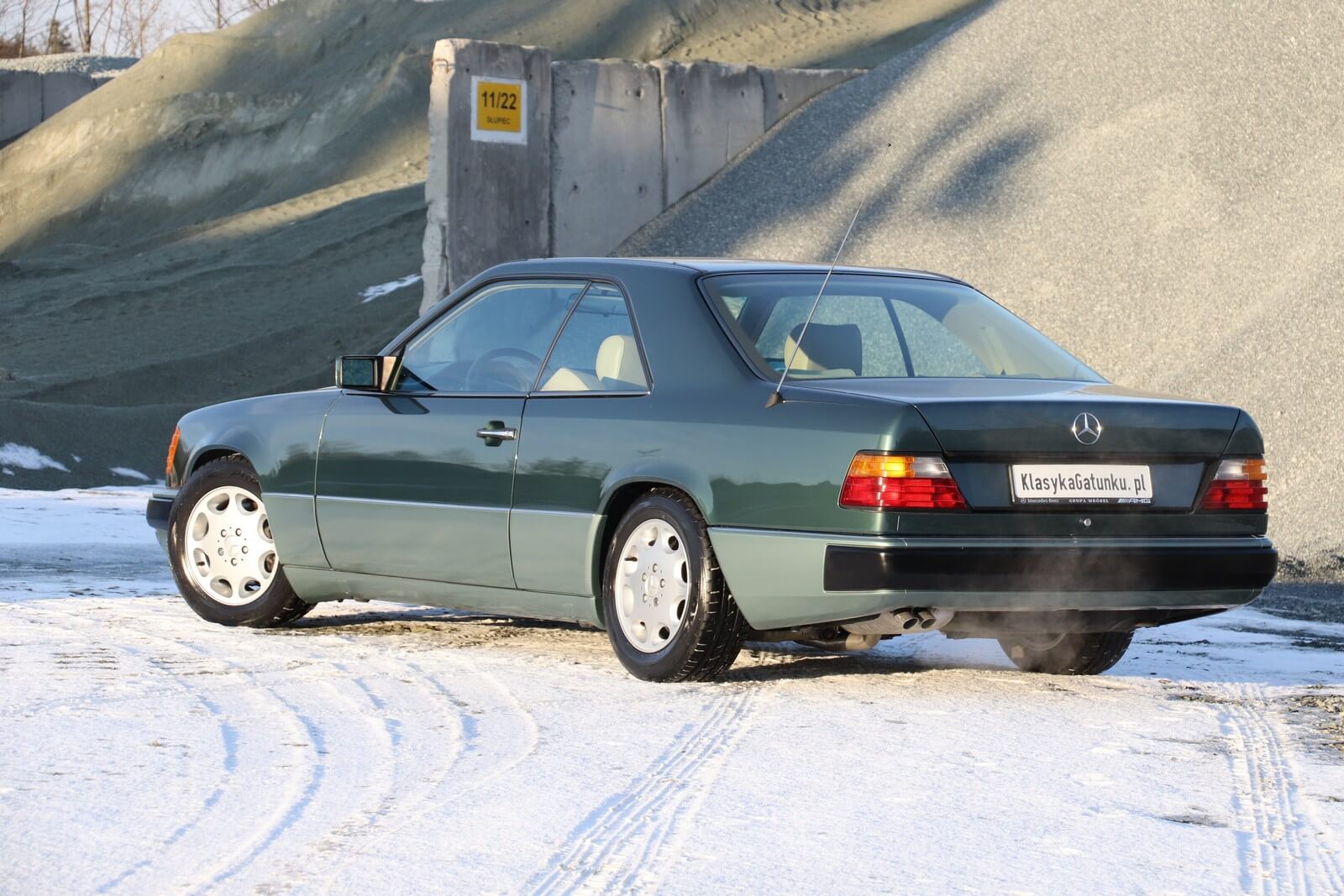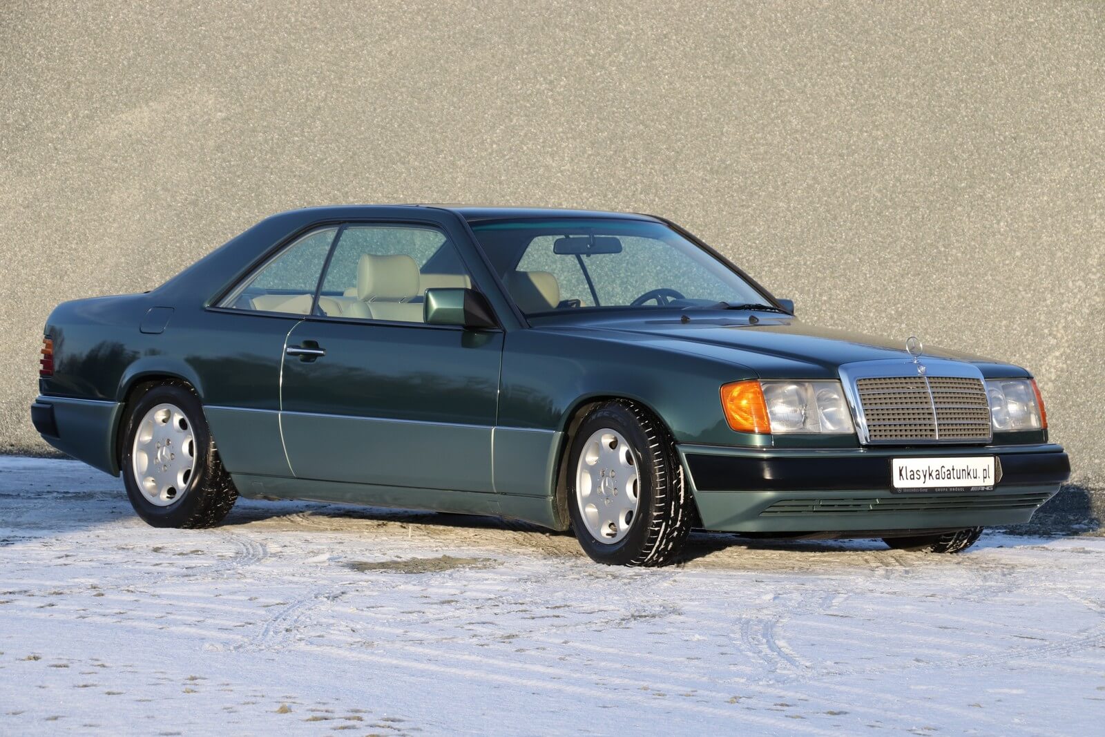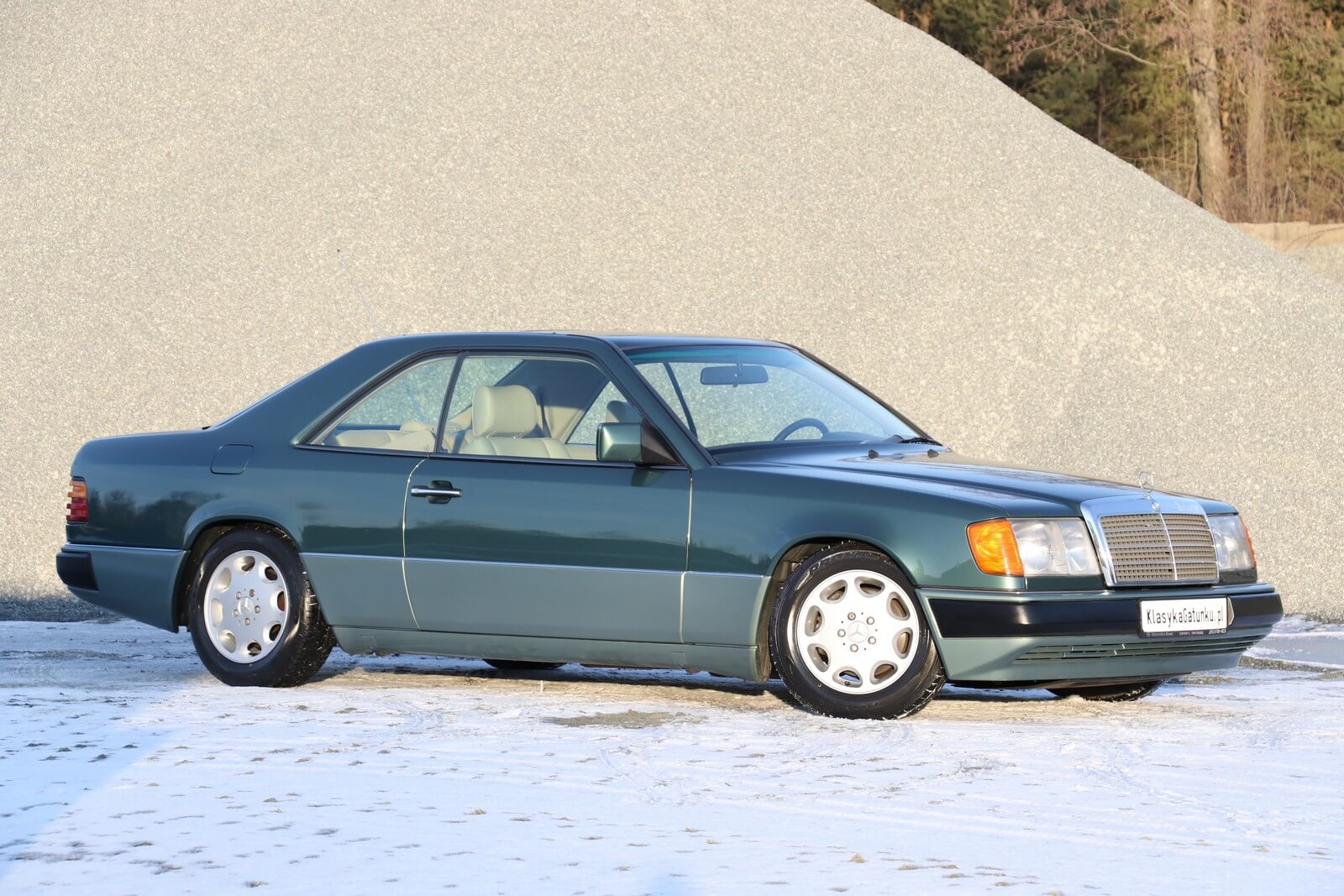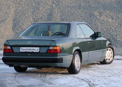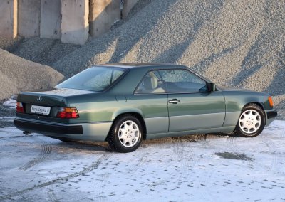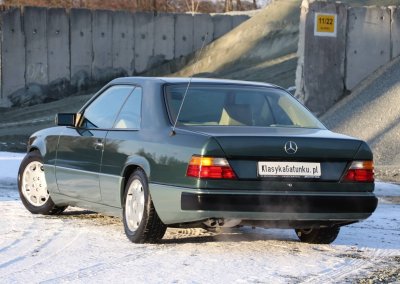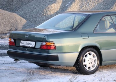Przedmiotem sprzedaży jest egzemplarz w kolorze 249 Malachitgrün Metallic z beżową skórzaną tapicerką 265 Champignon. Na uwagę zasługuje rzadko spotykane zestawienie kolorystyczne oraz flagowy silnik M104 dostępny w nadwoziu coupe. Pojazd sprowadzony z Val-de-Travers (Szwajcaria) od drugiego właściciela, obecnie zarejestrowany w Polsce i stanowiący część prywatnej kolekcji Mercedesów.