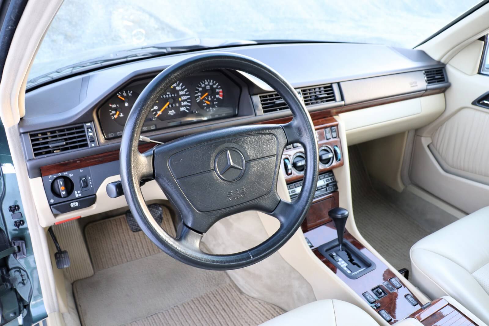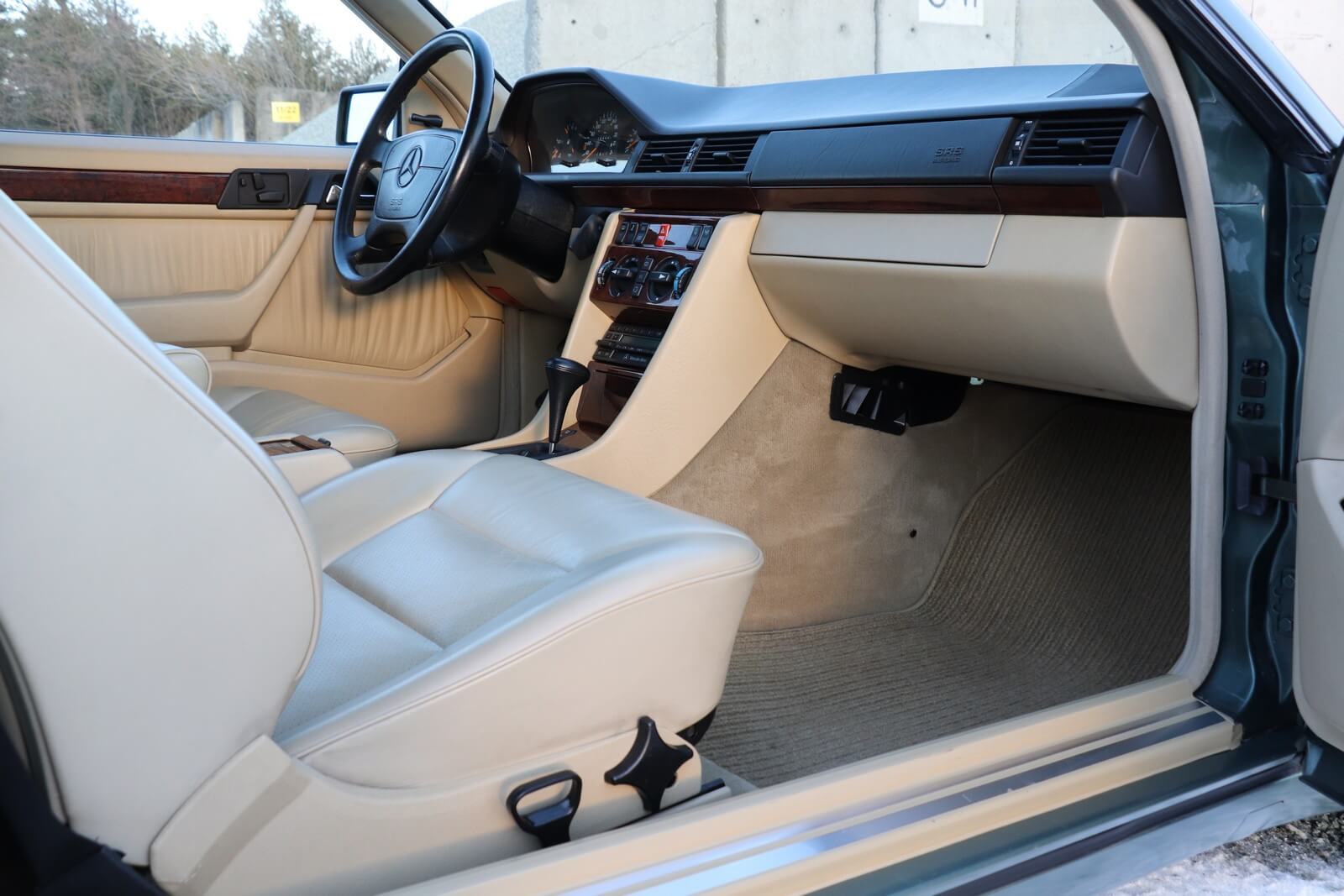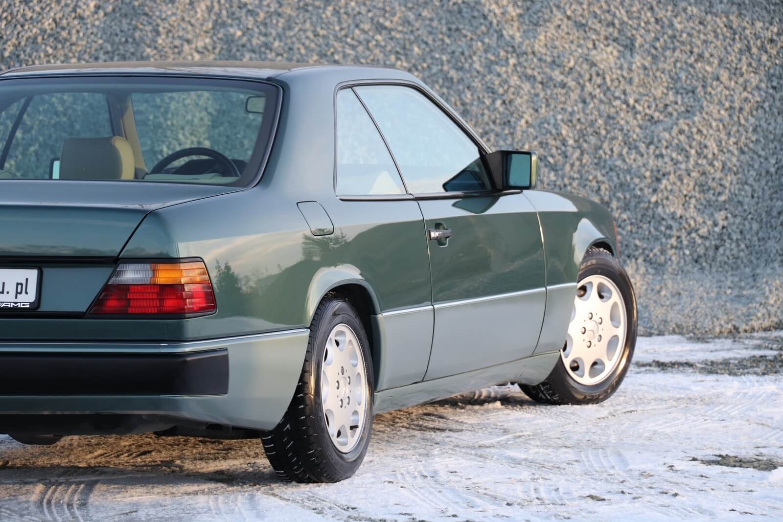 Przedmiotem sprzedaży jest egzemplarz w kolorze 249 Malachitgrün Metallic z beżową skórzaną tapicerką 265 Champignon. Na uwagę zasługuje rzadko spotykane zestawienie kolorystyczne oraz flagowy silnik M104 dostępny w nadwoziu coupe. Pojazd sprowadzony z Val-de-Travers (Szwajcaria) od drugiego właściciela, obecnie zarejestrowany w Polsce i stanowiący część prywatnej kolekcji Mercedesów.