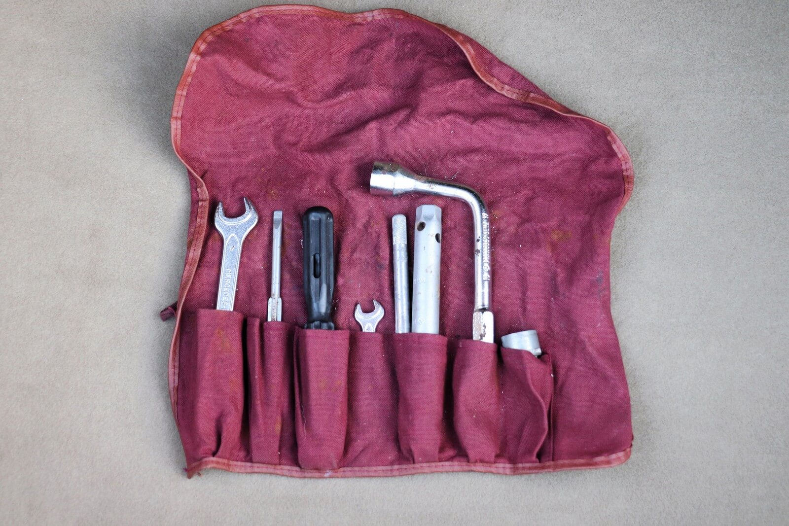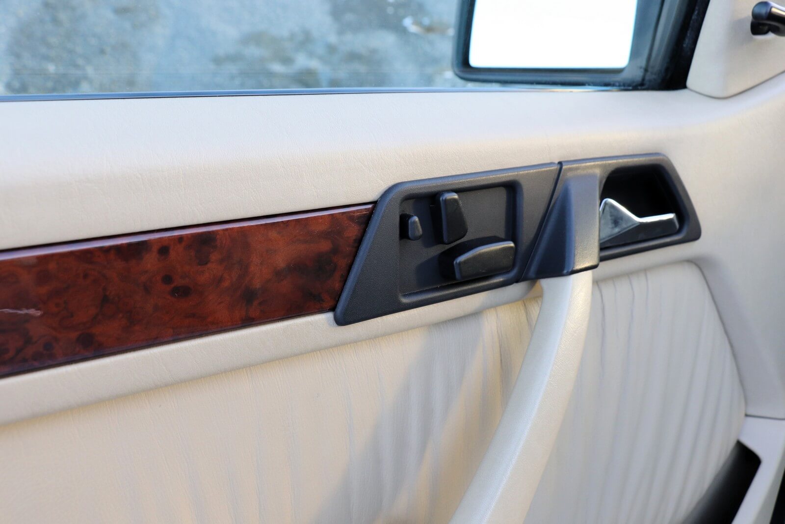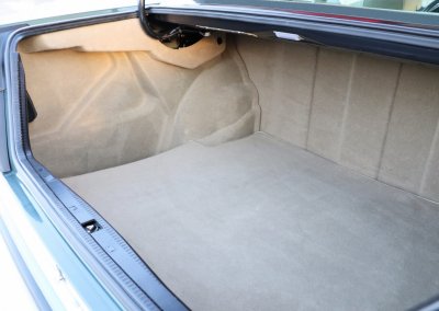 Wnętrze kompletne i zadbane: oryginalna, nieobszywana kierownica i wybierak, drewniane wykończenia w idealnym stanie (wypolerowane i zabezpieczone powłoką ceramiczną), komplet oryginalnych dywaników, sprawne podajniki pasów, czysta podsufitka, w pełni sprawne radio Becker (po przeglądzie i z modułem Bluetooth). Felgi i opony Toyo Proxxes CF1 w bardzo dobrym stanie. W bagażniku komplet akcesoriów, oryginalna apteczka oraz papierowa Datenkarta.