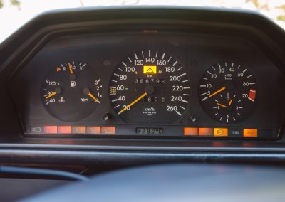Spełnia kryteria, jakie są wymagane dla pojazdów zabytkowych (oryginalne w ponad 90%), jest nieoryginalna kierownica skórzana + drewno pochodząca z modelu R170 nadająca klimatu i niepowtarzalności, idealnie komponująca się z resztą paneli drewnianych w tym samym odcieniu.