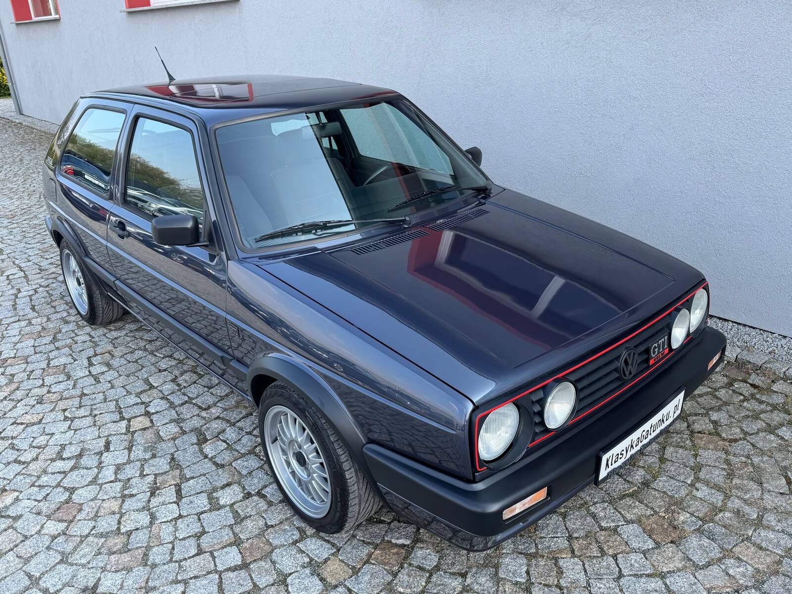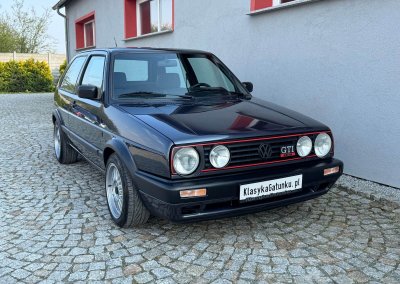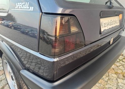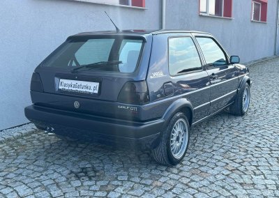 Przedmiotem sprzedaży jest unikatowy egzemplarz Volkswagena Golfa MK2 GTI w kolorze Heliosblau Metallic z materiałową tapicerką z monogramem wersji Special. Sprowadzony przez nas z Moutier, Szwajcaria od drugiego właściciela, który posiadał go od 2002 do 2025 roku. Samochód ma 38 lat, mimo to jest utrzymany w bardzo dobrym stanie z minimalnymi śladami użytkowania. Posiada wszelkie akcesoria oraz komplet dokumentów serwisowych: książka serwisowa, książka badań spalin Abgas z regularnymi wpisami, instrukcje, kluczyki z etui w kolorze tapicerki.